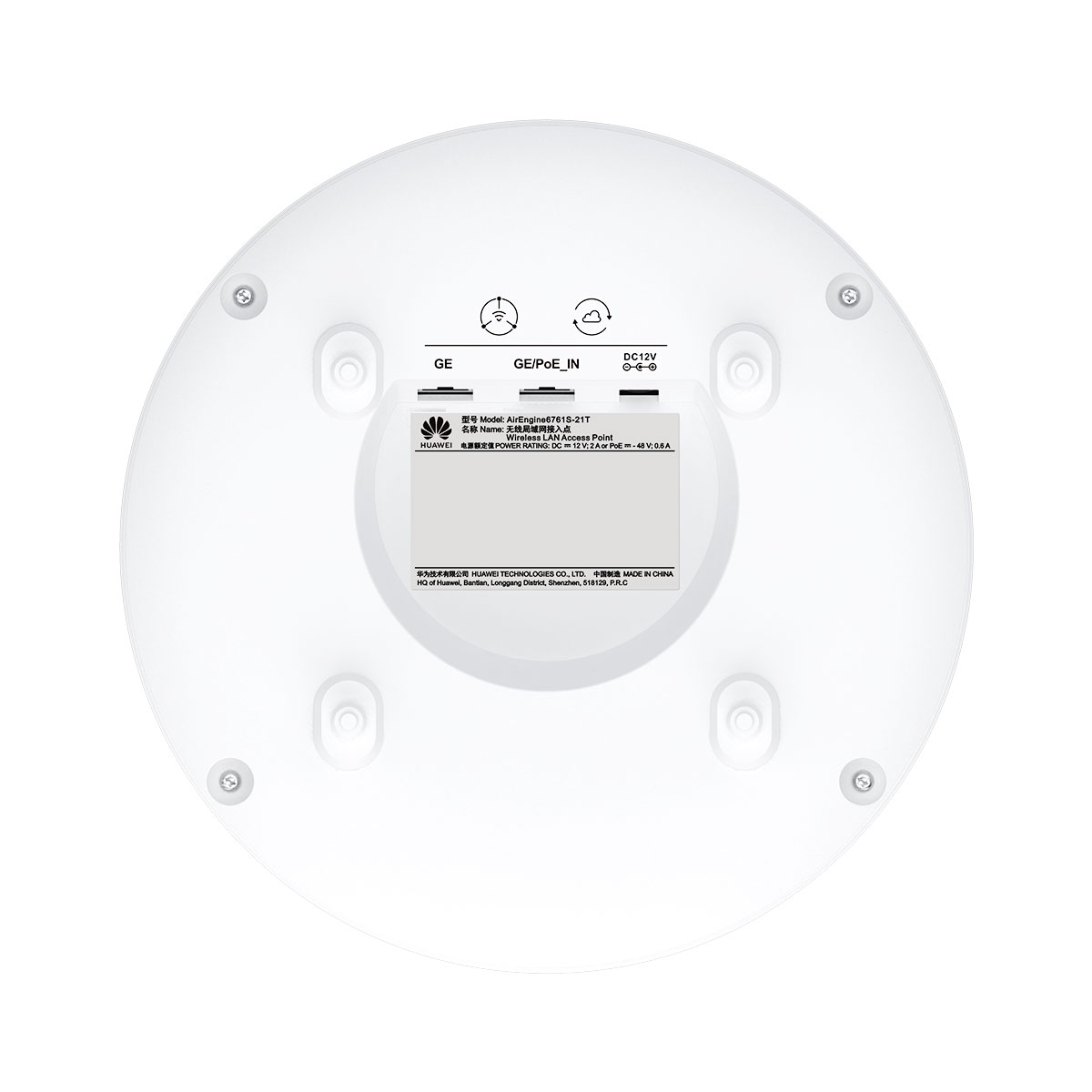 Huawei AirEngine 6761S-21T is an access point (AP) in compliance with the Wi-Fi 6 standard. It can simultaneously provide services on three frequency bands: 2.4 GHz (2×2 MIMO), 5 GHz (2×2 MIMO), and 5 GHz (4×4 MIMO). The AP uses built-in smart antennas to ensure always-on Wi-Fi signals for users, significantly enhancing users’ wireless network experience. It is ideal for densely populated scenarios such as mobile office, education, shopping malls, and supermarkets.
