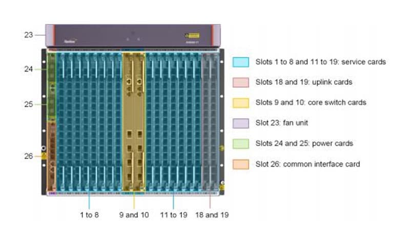 | Service card slot | 1-8 and 11- 19 | GPOA, EX8A, EXOA, GX8A, GM8A, GM8B, GMOA, GNOA, GFOA and PXNA |