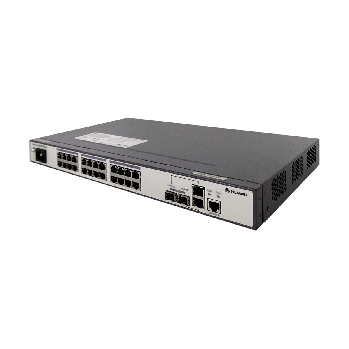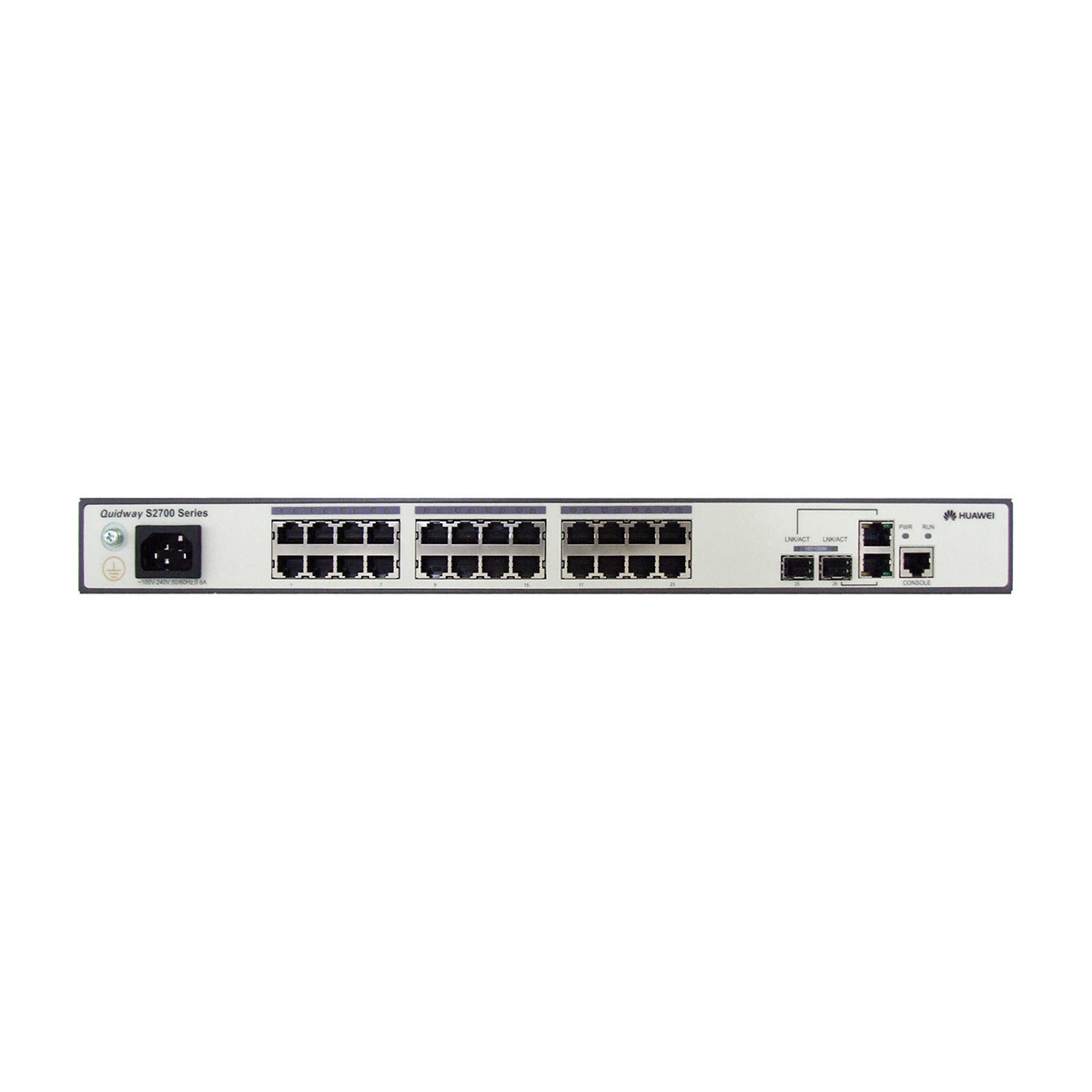 Huawei S2700-26TP-PWR-EI-AC switch supports 24 10/100BASE-T ports, 2 dual-purpose 10/100/1000BASE-T or SFP ports, fixed AC power