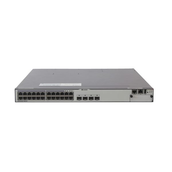 Huawei S5700-28C-PWR-SI-AC with 24 10/100/1000BASE-T ports, 4 of which are dual-purpose 10/100/1000BASE-T or 100/1000BASE-X ports, PoE+, is one of the Huawei S5700 series switches. The S5700 gigabit enterprise switch is next-generation energy-saving switch developed by Huawei to meet the demand for highbandwidth access and Ethernet multi-service aggregation. With 24 GE ports and 2 extended slots, it provides a large switching capacity and highdensity GE ports to implement 10 Gbit/s upstream transmissions, widely used in various application scenarios like enterprise park access, convergence, gigabit access of data center application scenarios.