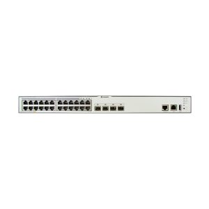 Huawei S5710-28C-PWR-EI-AC switch supports 20 1000BASE-T PoE+ ports, 4 GE SFP combo ports, 4 10GE SFP+ ports, 2 power slots, 2 extension slots, wihtout power module
