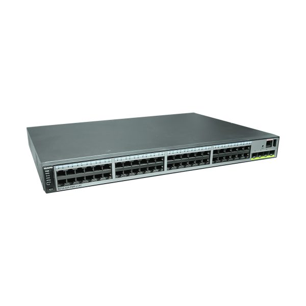 Huawei Huawei S5720-52P-PWR-LI-AC with 48 10/100/1000BASE-T ports, 4 GE SFP ports, fixed AC power, supports RPS, PoE+, which is one of the S5720s serie switch.