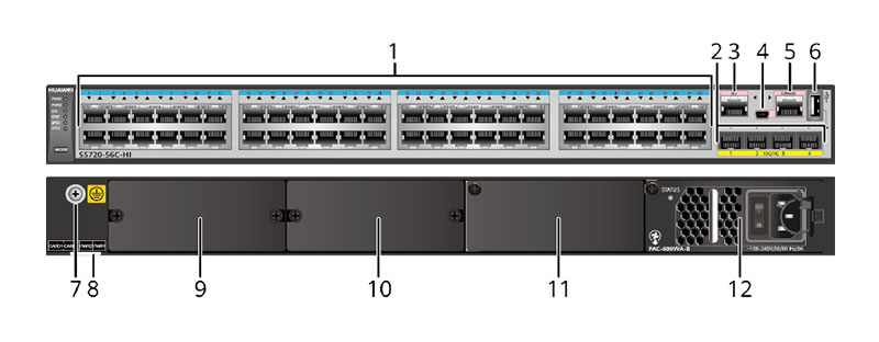 | 2 | Four 10GE SFP+ ports | 8 | ESN label |