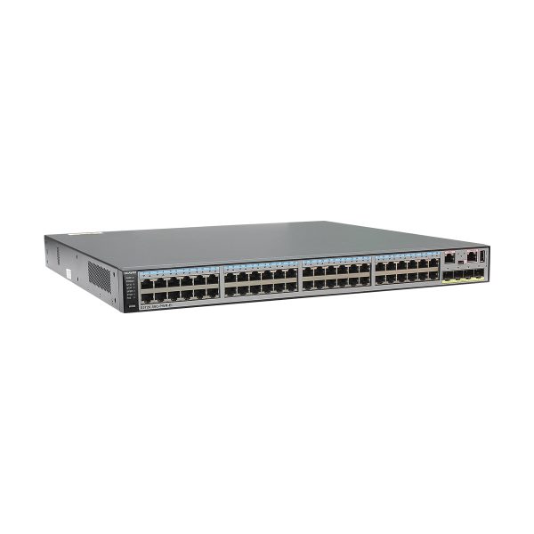 Huawei S5720-56C-PWR-EI-AC switch with 48 10/100/1000BASE-T ports, 4 10GE SFP+ ports, 1 extended slot, 2 hot swappable AC/DC power supplies, 1 AC equipped, PoE+, which is one of the S5720s serie switch.