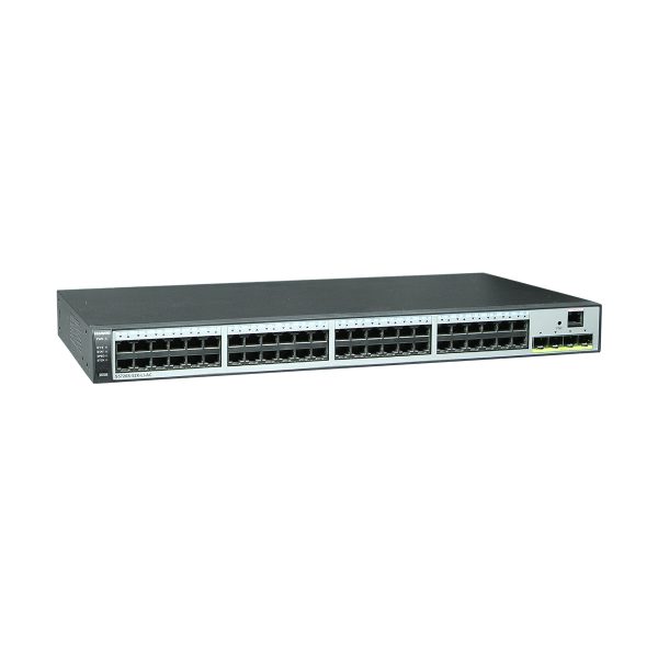 Huawei S5720-52X-LI-AC switch with 48 10/100/1000BASE-T ports, 4 10GE SFP+ ports, fixed AC power, supports RPS, which is one of the S5720s serie switch.