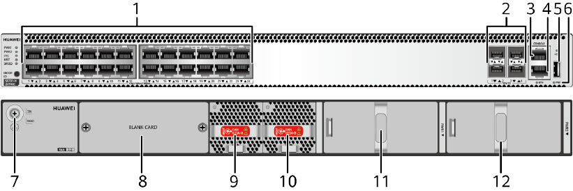 | 2. Four 10GE SFP+ ports | 8. Rear card slot |