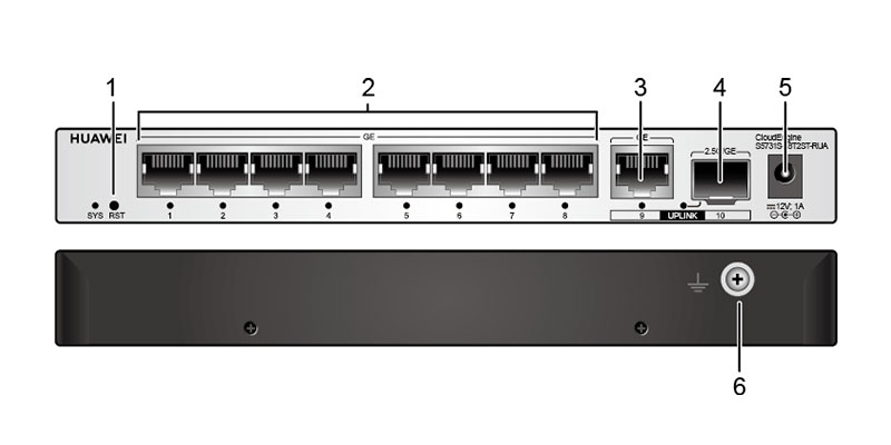 Huawei S5731S-L8T2ST-RUA switch supports 8*10/100/1000BASE-T ports, 1*GE SFP port, 1*10/100/1000BASE-T port, AC power, power adapter