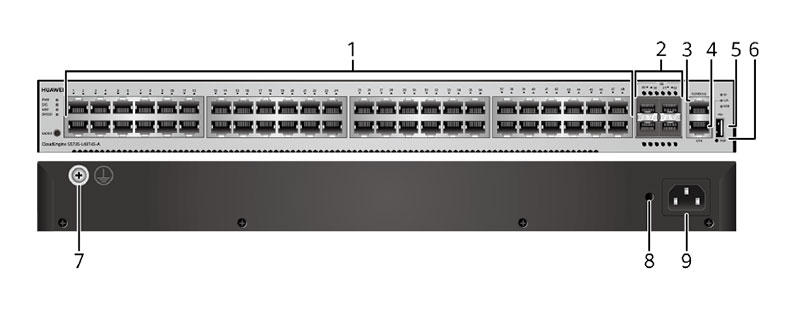 This Huawei switch comes with 48 10/100/1000BASE-T ports, 4 GE SFP ports.