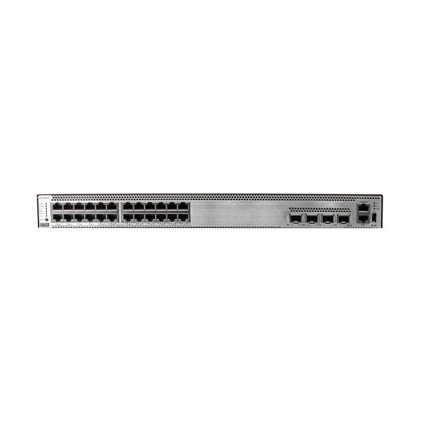 | 98011020 | 24*100M/1G Ethernet ports, Optional RTU upgrade to 2.5/5/10G, 4*10GE SFP+ ports, 1*expansion slot, PoE++, without power module | By default, no power supply is configured. By default, multi-GE ports support 100 Mbit/s and 1000 Mbit/s. You can purchase an RTU license to increase the port rate to 2.5 Gbit/s, 5 Gbit/s, or 10 Gbit/s. There is a label on the rear side of the device, which contains the default rate “24*GE” supported by the multi-GE ports. |