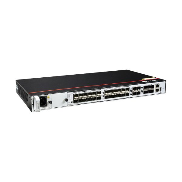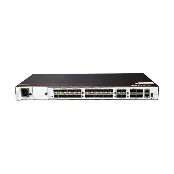 This Huawei switch comes with 24 10GE SFP+ ports, 4 GE/10GE/25GE SFP28 ports, 4 40GE/100GE QSFP28 ports, 2 hot swappable AC/DC power supplies, without power model equipped, which is one of the S6730 series switches.