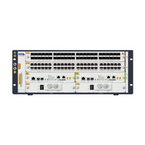 ZTE ZXR10 8902E switch consists of a chassis, power subracks, cards, a fan subrack, and a back panel. It uses a standard 19" chassis that can be installed independently or in a standard 19" cabinet and supports 4 slots, 2 for MCS modules and 2 for line interface cards.